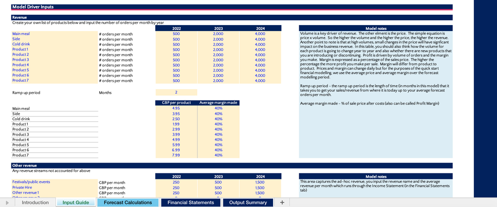 This easy to use Financial Model template guides you through all inputs and gives clear and concise outputs with explanations, giving you a fast way to make business decisions around pricing, new products and margins.