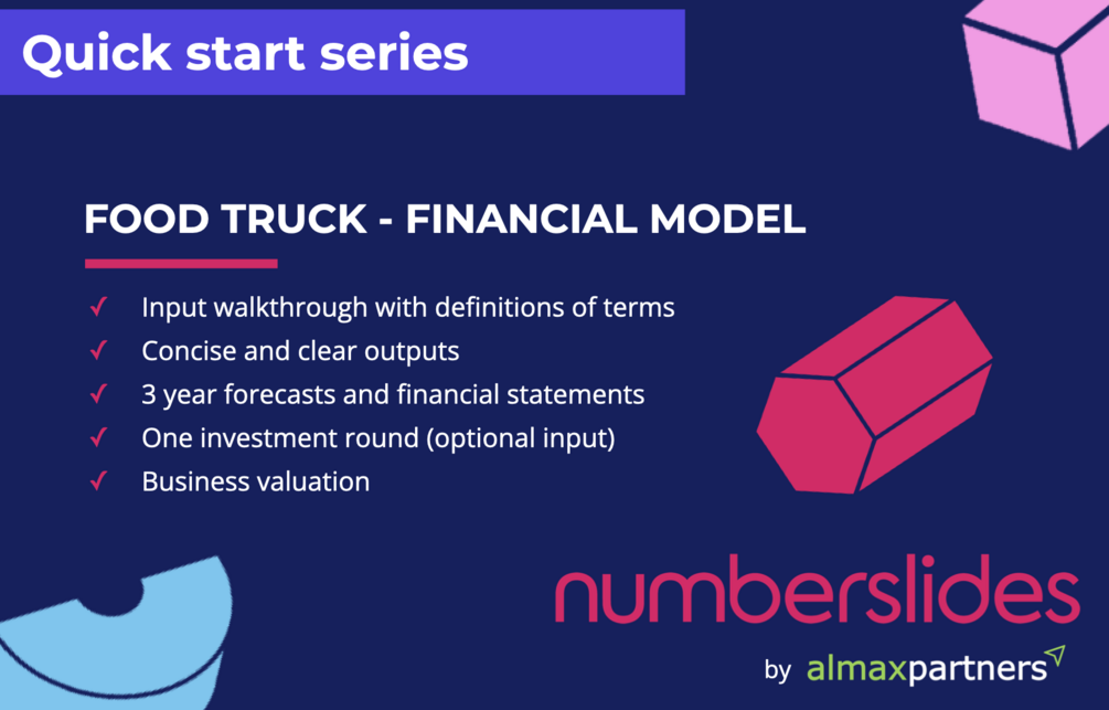 A food truck financial model with guided inputs, in Microsoft Excel to download.