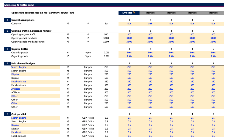 This easy to use and online traffic forecast tool enables you to build your marketing channels and marketing budget requirements to bring users to your online platform whether it is a website, eCommerce store or SAAS platform.Ā